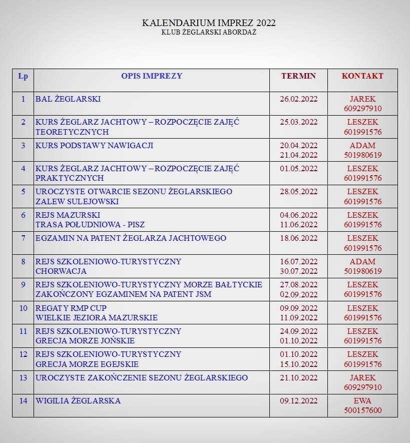 Gorąco zachęcamy wszystkich do uczestnictwa w planowanych przez nasz Klub imprezach.