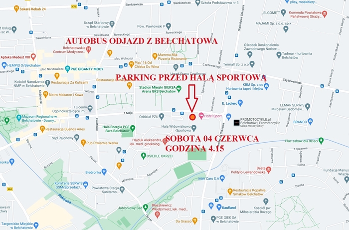 Wyjazd z Bełchatowa parking przed Halą Sportową godzina. 4.30 - prosimy wszystkich o przybycie na miejsce zbiórki nie później niż o godzinie 4.15.
