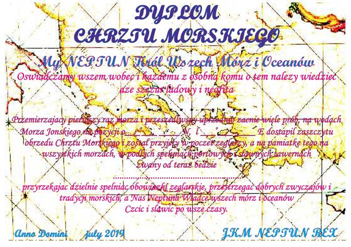 W tym roku, w naszych załogach aż roi się od neofitów. Dziewięcioro załogantów jest w dziewiczym rejsie na morzu. Nie ma więc wyboru, trzeba przystąpić do ceremoniału Chrztu Morskiego. Szybka narada, omówienie scenariusza, przydział ról i do dzieła.